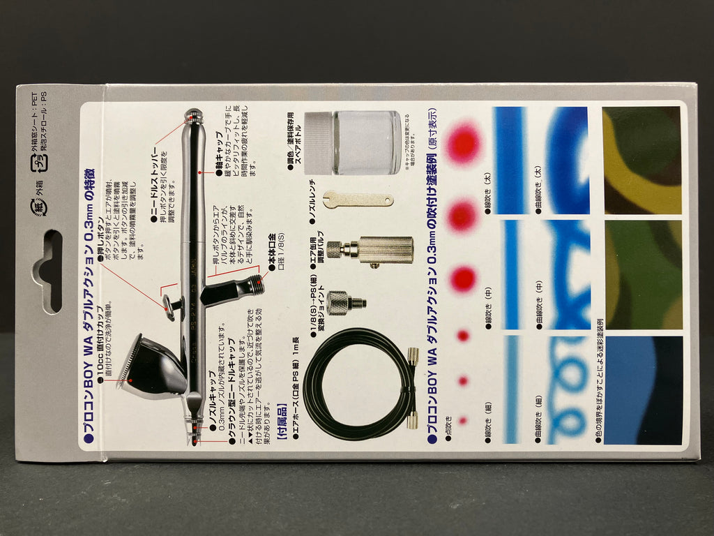 A standard airbrush with a diameter of 0.3 mm.