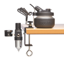 A must for any studio, the Anest Iwata Universal Airbrush Holder securely holds a combination of any two (2) gravity-feed, bottom-feed, side-feed and trigger airbrushes. Heavy-duty clamp for tables up to 3 inches (76.2 mm) thick. Included with the Universal Airbrush Holder is a bracket to connect to the popular Anest Iwata Universal Spray Out Pot. Combine the Universal Airbrush Holder with the Universal Spray Out Pot and Moisture Filter with Gauge to begin building your Iwata Workstation today.